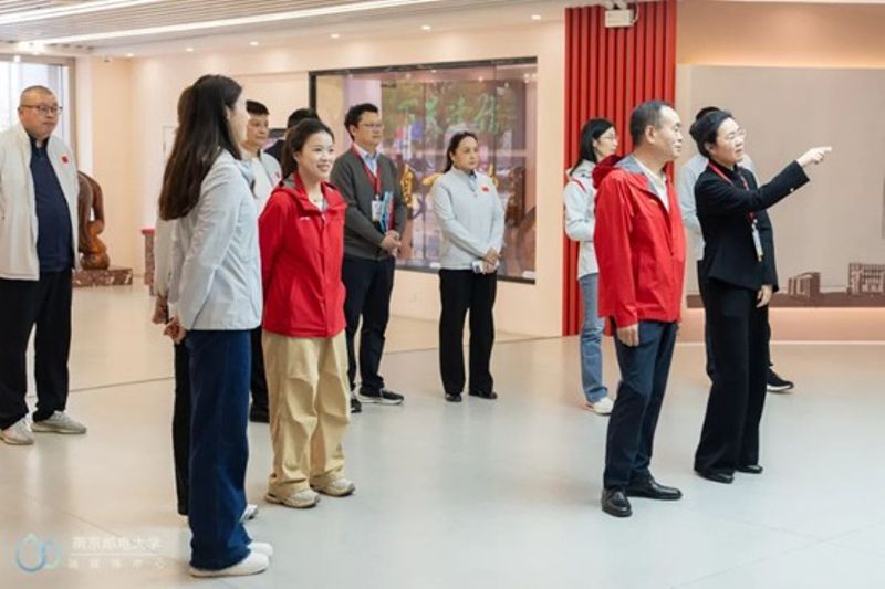 在啟動儀式開始前,出席活動的領(lǐng)導(dǎo)嘉賓與楊倩、張雨霏、王賜月三位奧運冠軍共同參觀了南郵校史館。在講解員的引導(dǎo)下,借由珍貴的歷史照片、實物展品與多媒體展示,大家深入了解南郵八十余年的辦學(xué)歷史、學(xué)科特色以及在信息通信領(lǐng)域取得的突出成就。