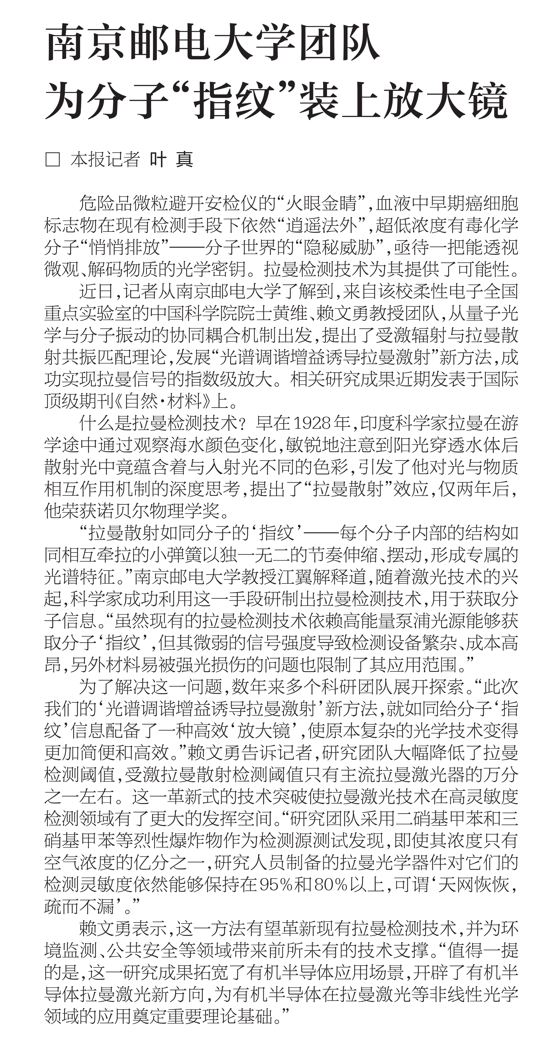 【新華日報】南京郵電大學團隊為分子“指紋”裝上放大鏡