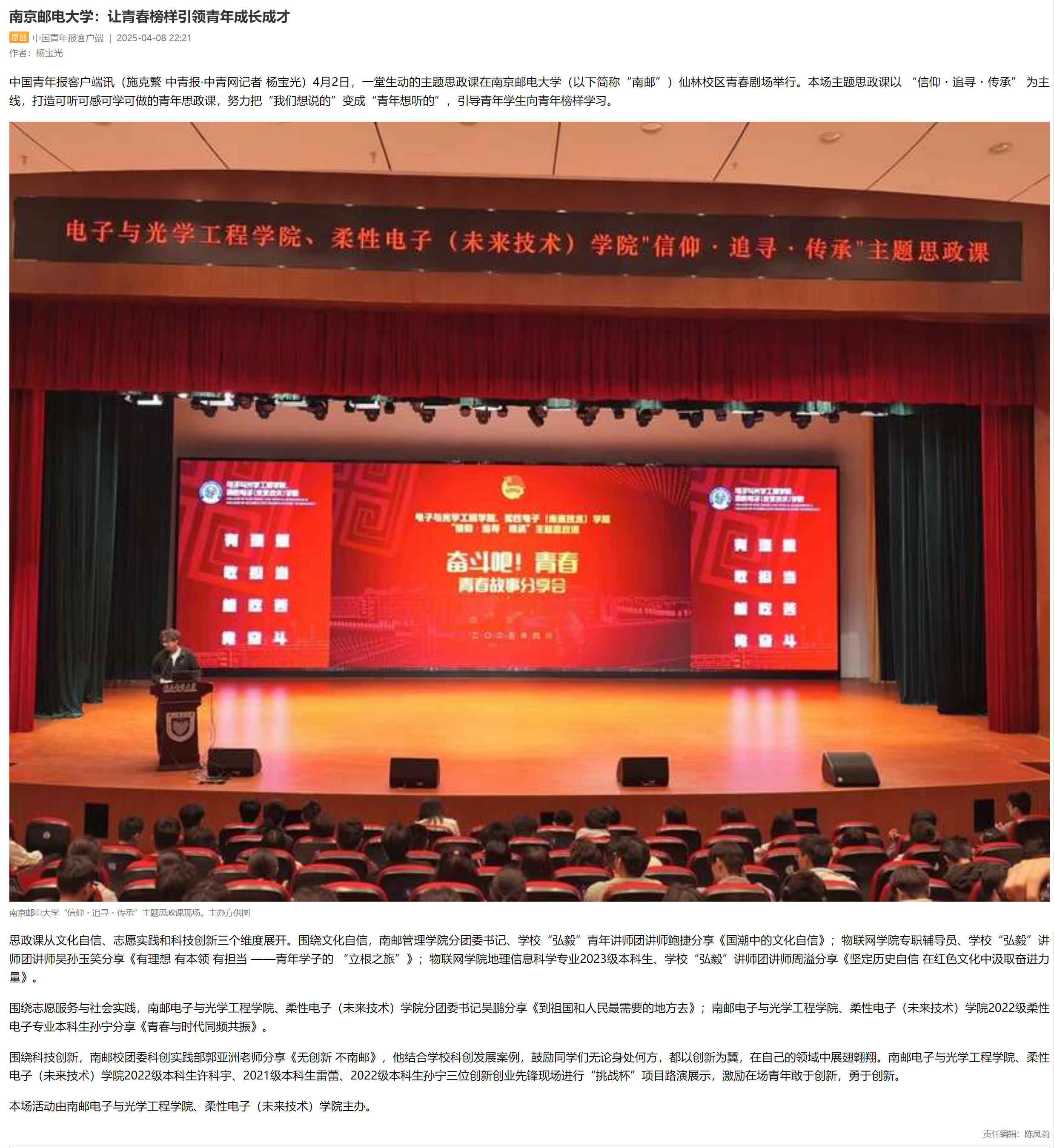 【中國青年報客戶端】南京郵電大學:讓青春榜樣引領青年成長成才