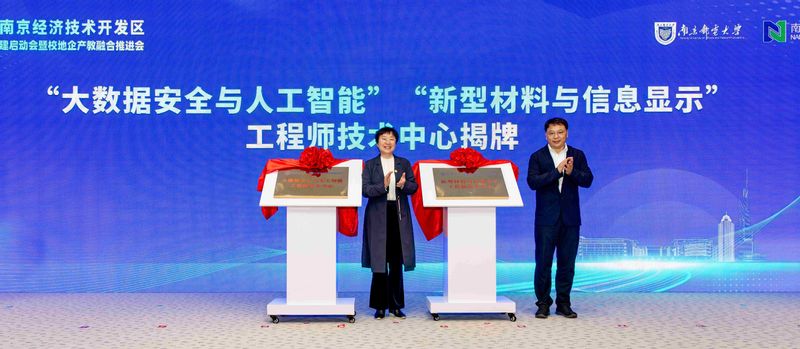 葉美蘭校長和藍軍主任共同為南京郵電大學江蘇省卓越工程師學院、“大數據安全與人工智能”和“新型材料與信息顯示”工程師技術中心揭牌。兩個技術中心將作為校地企合作的關鍵平臺,圍繞經開區光電顯示和人工智能核心產業方向開展技術研發和產業服務,推動科技創新與產業發展深度融合。