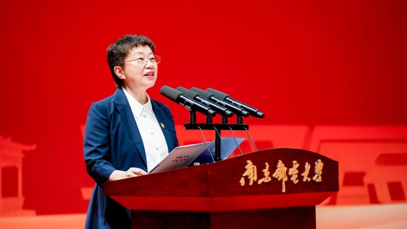 葉美蘭代表學校向畢業生表示誠摯祝賀,向辛勤培育他們的老師們和家人們致以衷心感謝。她以《以青春風采奔赴山海天地》為題,深情回顧了學校與畢業生們共同成長的四年。“回顧這四年,是我們共同見證偉大祖國發展的四年,是我們與奮進南郵共享榮耀的四年,是學校與你們共享喜悅的四年。”她說,“希望你們夠勇敢,有‘前路未卜亦敢往’的孤勇;希望你們有追求,有‘不破樓蘭終不還’的決心;希望你們肯脫俗,有‘一片冰心在玉壺’的純粹”,要永葆南郵人對創新、拼搏、事業的追求,以“厚德弘毅”的擔當直面挑戰、用“求是篤行”的力量破解困局,在強國建設、民族復興的偉大征程中挺膺擔當。