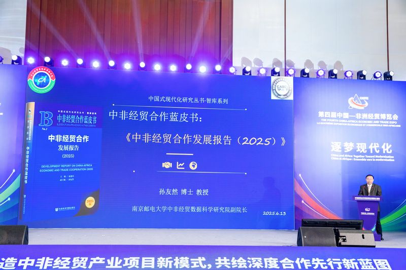6月13日上午,第四屆中非經貿博覽會中非經貿合作項目落地方案推介活動在長沙舉行。南京郵電大學中非經貿數據科學研究院和湖南省中非經貿合作促進研究會聯合發布了《中非經貿合作藍皮書 (2025)》和《中非經貿指數報告(2025)》兩項研究成果,為全球投資者提供赴非投資決策的重要參考。