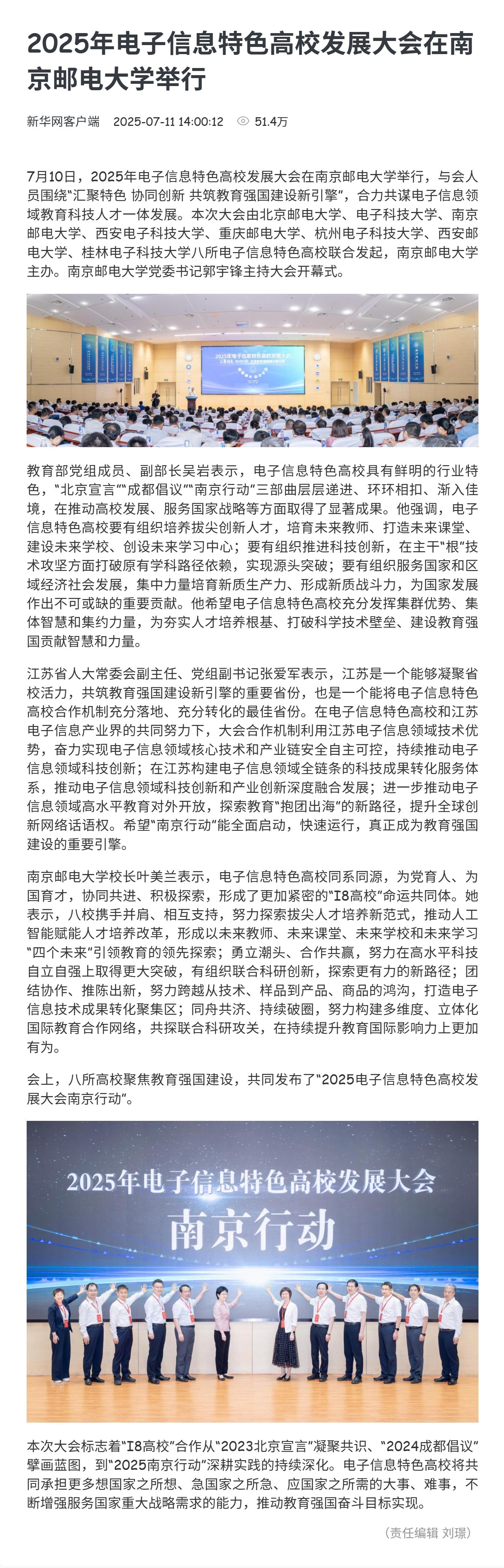 【新華網客戶端】2025年電子信息特色高校發展大會在南京郵電大學舉行
