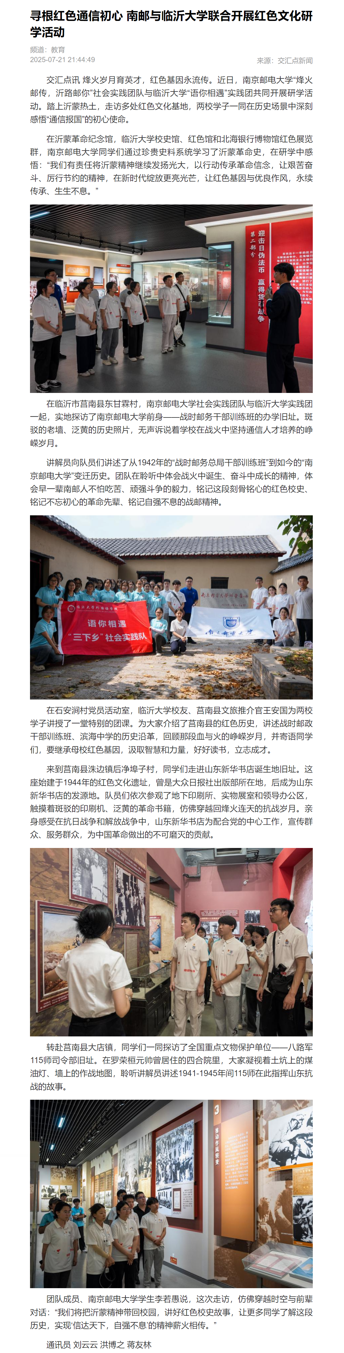 【新華日報客戶端】尋根紅色通信初心 南郵與臨沂大學聯合開展紅色文化研學活動
