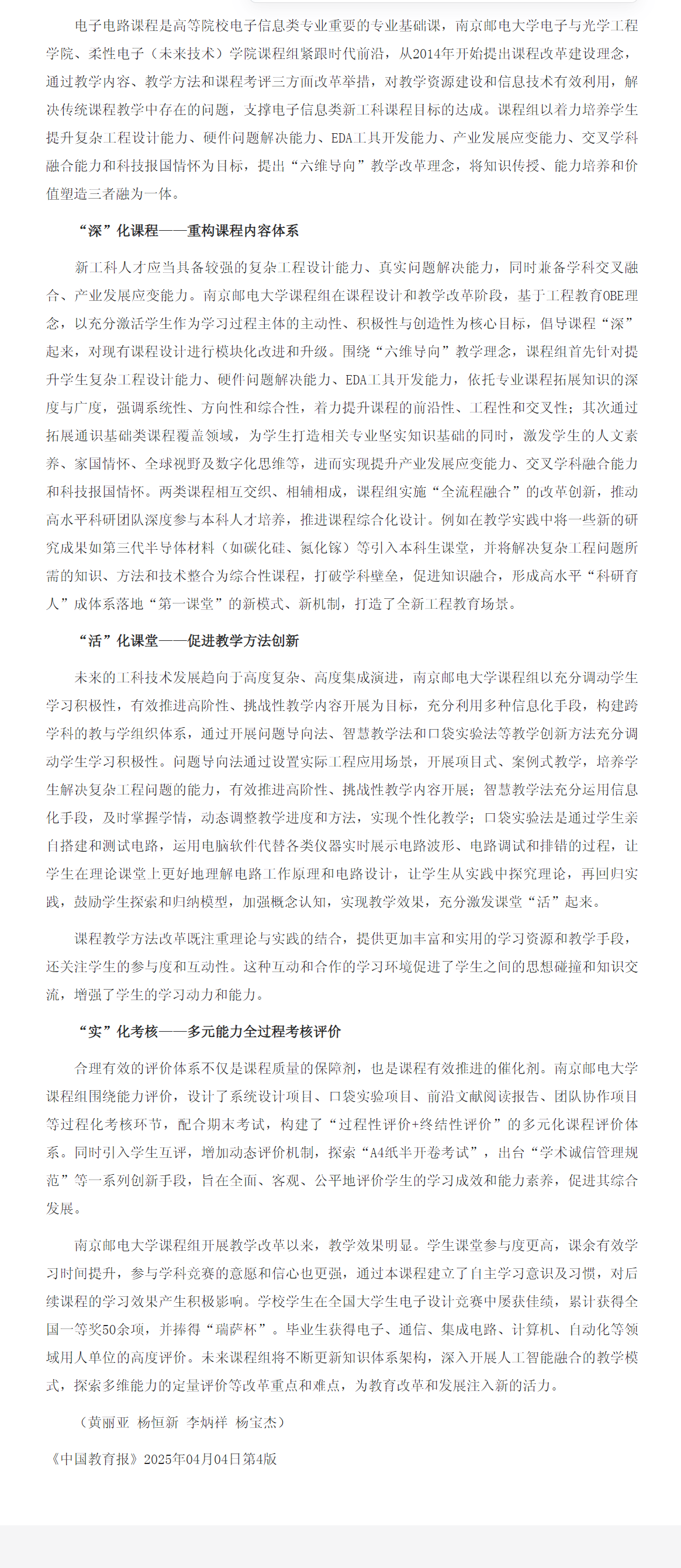 【中國教育報】南京郵電大學以“六維導向”推進工科課程改革