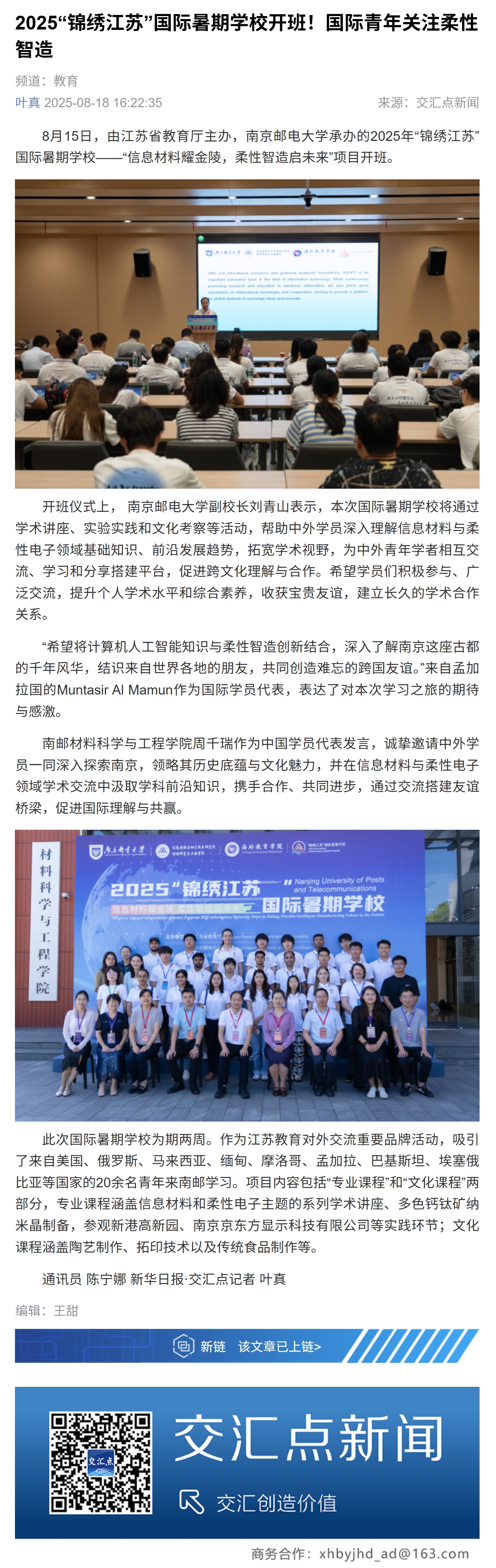 【新華日報客戶端】2025“錦繡江蘇”國際暑期學校開班!國際青年關注柔性智造