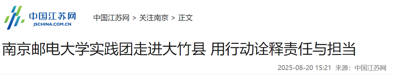 【中國江蘇網(wǎng)】南京郵電大學(xué)實踐團走進大竹縣 用行動詮釋責(zé)任與擔(dān)當(dāng)