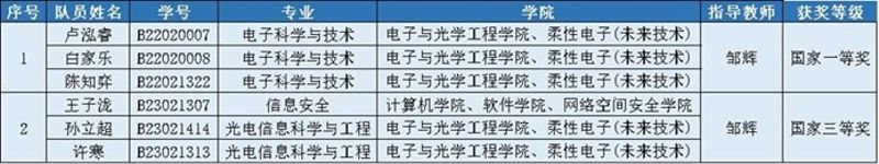 全國大學生光電設計競賽國賽南京郵電大學獲獎名單