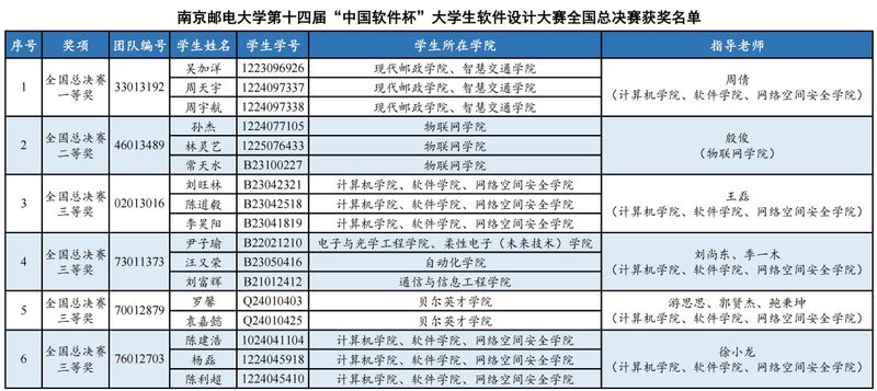 8月28日,第十四屆“中國軟件杯”大學生軟件設計大賽全國總決賽獲獎名單公布。南京郵電大學代表隊獲全國總決賽一等獎1項、二等獎1項、三等獎4項。南郵獲“優秀組織院校”稱號。