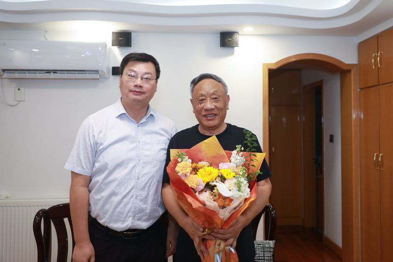 在曹偉教授家中,郭宇鋒關(guān)切詢問他的身體狀況,介紹了學(xué)校近期在學(xué)科建設(shè)、人才培養(yǎng)、科學(xué)研究等方面取得的新進(jìn)展與新成就,并認(rèn)真聽取曹教授對學(xué)校發(fā)展的意見建議。他說,“學(xué)校今日的發(fā)展壯大,凝聚著像曹教授這樣一代代老教師們的心血與智慧,學(xué)校將用心用情做好退休老教師的服務(wù)保障工作”。曹教授對學(xué)校長期以來的關(guān)心照顧表示由衷感謝,他深情回顧在校工作期間的難忘歲月,表示將發(fā)揮余熱,繼續(xù)關(guān)注和支持學(xué)校工作,為學(xué)校高質(zhì)量發(fā)展積極建言獻(xiàn)策。