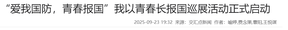 【新華日報客戶端】“愛我國防,青春報國”我以青春長報國巡展活動正式啟動