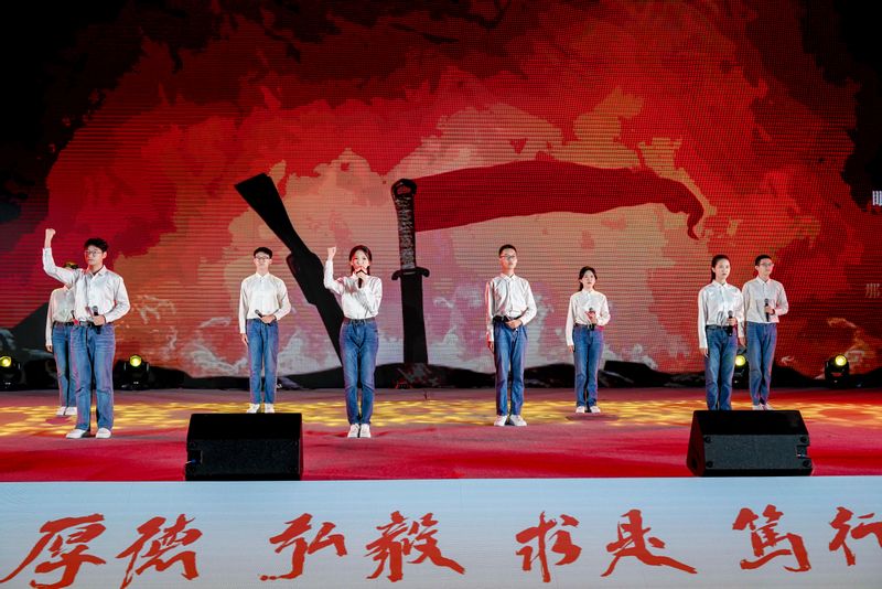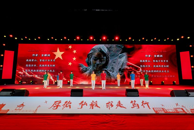 開場節目交響樂合奏《紅旗頌》,用紅色旋律奏響時代強音,表現了中國人民在紅旗的指引下,英勇頑強、接續奮斗的革命氣概;啦啦操《躍動青春》用活力矩陣詮釋青春張力,以整齊劃一的揮臂動作與騰空跳躍展現動態美感,舞出南郵學子朝氣蓬勃的精神面貌;2025級新生代表用朗誦《何以沂蒙:紅土丹心別樣紅》,帶領大家走進沂蒙山區那片浸透熱血與深情的紅土地,感悟紅色精神。