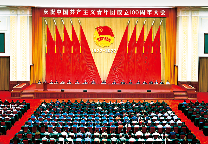2022年5月10日,慶祝中國共產主義青年團成立100周年大會在北京人民大會堂隆重舉行。 新華社記者 翟健嵐/攝