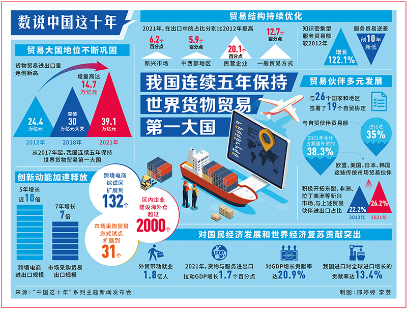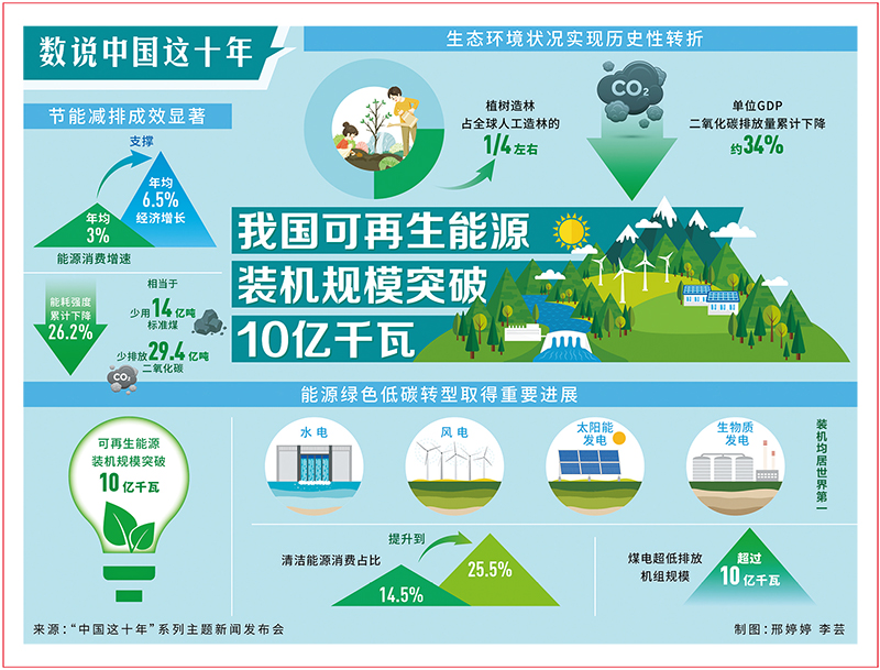 沿著這條康莊大道、人間正道,新時(shí)代10年來,我國經(jīng)濟(jì)實(shí)力又邁上一個(gè)大臺階,經(jīng)濟(jì)總量由2012年的53.9萬億元上升到2021年的114.4萬億元,占世界經(jīng)濟(jì)比重從11.4%上升到超過18%,人均國內(nèi)生產(chǎn)總值從6300美元提升至1.25萬美元;歷史性地解決了困擾中華民族幾千年的絕對貧困問題,現(xiàn)行標(biāo)準(zhǔn)下9899萬農(nóng)村貧困人口全部脫貧,832個(gè)貧困縣全部摘帽,12.8萬個(gè)貧困村全部出列,提前10年實(shí)現(xiàn)《聯(lián)合國2030年可持續(xù)發(fā)展議程》減貧目標(biāo);人民生活水平和質(zhì)量不斷提高,建成了世界上規(guī)模最大的教育體系、社會保障體系和醫(yī)療衛(wèi)生體系,人均預(yù)期壽命由75.4歲提高到了77.9歲,中等收入群體的比重由1/4左右上升到了1/3左右;生態(tài)環(huán)境狀況實(shí)現(xiàn)了歷史性的轉(zhuǎn)折,植樹造林占全球人工造林的1/4左右,單位國內(nèi)生產(chǎn)總值二氧化碳排放量累計(jì)下降了大約34%,風(fēng)電、光伏發(fā)電等綠色電力的裝機(jī)容量和新能源汽車產(chǎn)銷量居世界第一……黨和國家事業(yè)取得的歷史性成就、發(fā)生的歷史性變革,彰顯了中國特色社會主義的強(qiáng)大生機(jī)活力,為實(shí)現(xiàn)中華民族偉大復(fù)興提供了更為完善的制度保證、更為堅(jiān)實(shí)的物質(zhì)基礎(chǔ)、更為主動的精神力量。實(shí)踐深刻昭示:中國特色社會主義是根植于中國大地、反映中國人民意愿、適應(yīng)中國和時(shí)代發(fā)展進(jìn)步要求的科學(xué)社會主義。這條道路,不僅走得對、走得通,而且一定能夠走得穩(wěn)、走得好。