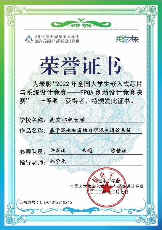 12月12日,由中國電子學會主辦的“2022年全國大學生嵌入式芯片與系統設計競賽——FPGA創新設計競賽”全國總決賽獲獎名單公布。我校參賽隊伍獲得國家一等獎2項、國家三等獎7項,一等獎獲獎總數列各參賽高校第二名,并獲優秀組織獎。