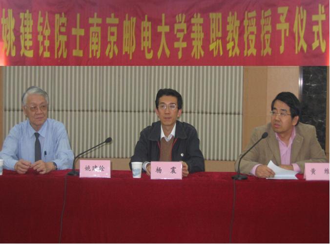 2006年10月30日下午,中國科學院院士、天津大學教授、博士生導師姚建銓受聘南京郵電大學兼職教授儀式暨學術報告會在學校科學會堂演講廳舉行。副校長黃維主持儀式,校長楊震向姚建銓院士頒發了兼職教授聘書,并為姚建銓教授戴上南京郵電大學的校徽。 姚建銓院士是我國著名激光與非線性光學專家,現任中國光學學會理事、中國光學學會激光專業委員會副主任、天津大學精儀學院名譽院長、激光與光電子研究所所長,同時任美國光學學會及SPIE會員、南加州大學激光中心客座高級研究員等職。他是第七、八、九屆全國政協委員,第八屆民進中央委員,第九、第十屆民進中央常務委員,天津市第十屆、第十一屆政協副主席,民進天津市委主委。姚建銓院士長期從事激光及非線性光學頻率變換技術研究,在高效倍頻激光器、高功率固體激光器、可調諧激光器、非線性光學及激光應用技術等方面的研究都達到國際先進水平。他提出的雙軸晶體的最佳相位匹配的計算理論,被國際學術界稱為“姚技術”、“姚方法”,并被國際學術界廣泛引用。他先后獲得國家發明二等獎、國家教委科技進步二等獎4次,中科院特等獎、軍隊科技進步一等獎、第36屆尤里卡國際發明博覽會金獎,個人獲得最高榮譽獎“一級騎士勛章”等殊榮,1997年姚建銓當選為中科院院士。姚建銓院士受聘我校兼職教授后,將會極大地促進我校光通信技術的研究,促進電子科學與技術、光學及光學工程學科的發展。 授聘儀式后,姚建銓院士作了題為“激光與太赫茲波技術國內外研究新進展”的學術報告,還就相關的學術問題回答了師生的提問。接著姚建銓院士與光電工程學院部分教師、博士進行了座談。他的“勤奮、謙虛、進取、創新”八字座右銘,給師生們留下深刻的印象。會上姚建銓院士對學院的學科建設、科研等工作提出了很好的建議。大家就進一步加強合作進行了探討。 校辦、人事處、研究生部、科技處、光電工程學院負責人及150余名師生參加了儀式和報告會。(光電工程學院)