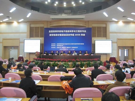 2006年12月9日,全國(guó)高等學(xué)校電子信息科學(xué)與工程類(lèi)專業(yè)教學(xué)指導(dǎo)分委員會(huì)及協(xié)作組2006年會(huì)在南京郵電大學(xué)科學(xué)報(bào)告會(huì)堂順利召開(kāi)。出席開(kāi)幕式的有教育部評(píng)估中心副主任李志宏教授,江蘇省教育廳副廳長(zhǎng)丁曉昌教授,江蘇省教育廳高等教育處王煌處長(zhǎng),南京郵電大學(xué)黨委副書(shū)記、紀(jì)委書(shū)記曹金才同志,南京郵電大學(xué)副校長(zhǎng)朱永平教授,全國(guó)高等學(xué)校電子信息科學(xué)與工程類(lèi)專業(yè)教學(xué)指導(dǎo)分委員會(huì)主任委員、北京交通大學(xué)校長(zhǎng)談?wù)褫x教授,全國(guó)高等學(xué)校電子信息科學(xué)與工程類(lèi)專業(yè)教學(xué)指導(dǎo)分委員會(huì)副主任委員、南京郵電大學(xué)原副校長(zhǎng)鄭寶玉教授,全國(guó)高等學(xué)校電子信息科學(xué)與工程類(lèi)專業(yè)教學(xué)指導(dǎo)分委員會(huì)秘書(shū)長(zhǎng)、內(nèi)蒙古大學(xué)張澤教授。大會(huì)開(kāi)幕式由全國(guó)高等學(xué)校電子信息科學(xué)與工程類(lèi)專業(yè)教學(xué)指導(dǎo)分委員會(huì)副主任委員、電子科技大學(xué)副校長(zhǎng)聶在平教授主持,丁曉昌副廳長(zhǎng)致辭,朱永平副校長(zhǎng)代表學(xué)校致歡迎詞。本次大會(huì)由教育部電子信息科學(xué)與工程類(lèi)專業(yè)教學(xué)指導(dǎo)分委員會(huì)主辦,南京郵電大學(xué)承辦,東南大學(xué)、揚(yáng)州大學(xué)、江蘇科技大學(xué)、南通大學(xué)等高校協(xié)辦。來(lái)自全國(guó)各高校的專家、代表200余人參加了開(kāi)幕式。
