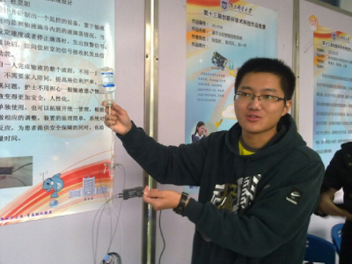 南報網訊: 南京郵電大學“第十六屆大學生科技節”剛剛開幕,一批大學生科技作品脫穎而出。圖為該校通信與信息工程學院俞斌等發明的放心輸液系統。該系統可實現自動監測滴斗內的藥液情況,發現藥水快沒有時,自動發給護士站信號。 作者及來源:談潔 南報網 2011年11月23日 |