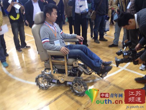 優秀成果展示之一:麥克納姆輪多功能輪椅。中國青年網記者 孔維鵬 攝