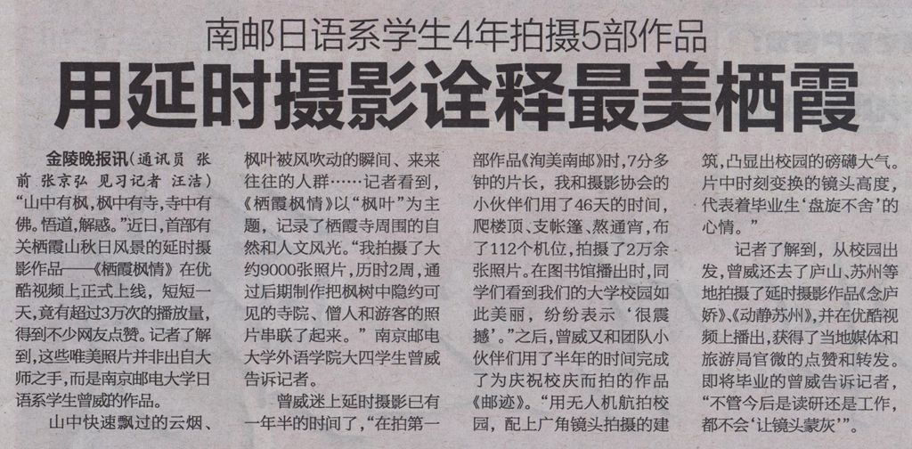 【金陵晚報】用延時攝影詮釋最美棲霞
