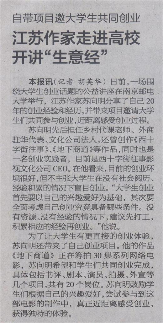 【南京日報】江蘇作家走進高校開講“生意經(jīng)”
