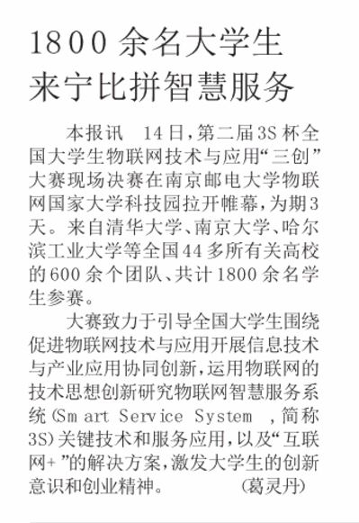 【新華日報】1800余名大學生來寧比拼智慧服務