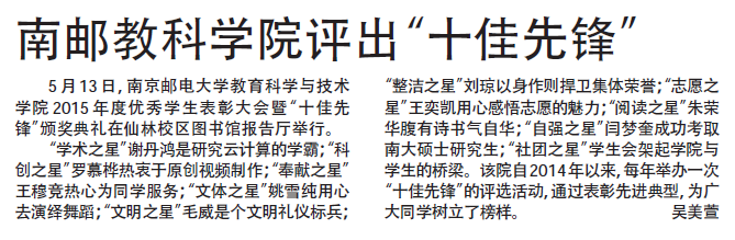 【南京晨報】南郵教科學院評出“十佳先鋒”