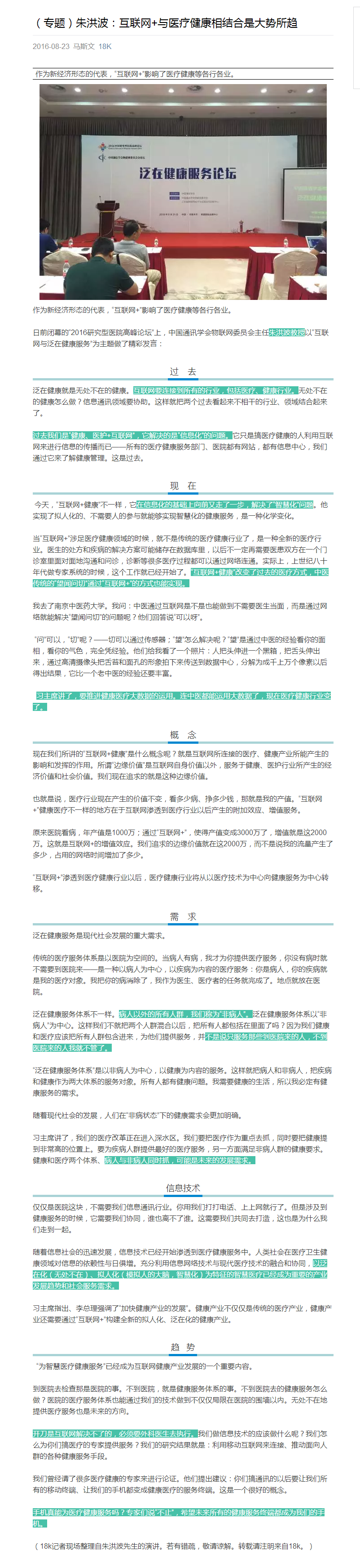 【18K】朱洪波:互聯網+與醫療健康相結合是大勢所趨