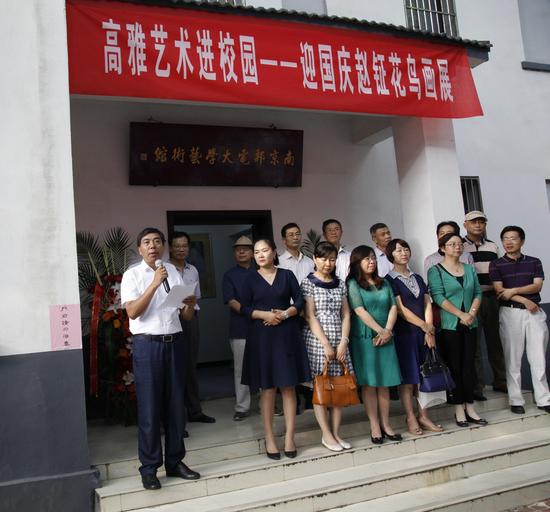 9月23日,高雅藝術進校園——迎國慶趙鉦花鳥畫展在南京郵電大學藝術館(李味青藝術館)舉行。江蘇省新聞美術家協會會長潘高鵬,南京圖書館黨委書記韓顯紅,江蘇省國畫院傅抱石紀念館副館長黃戈,江蘇省花鳥畫研究會顧問、格冠美術館名譽館長孫元亮,南京郵電大學副校長王國平出席開幕式。 據悉,本次畫展以大寫意花鳥為主,分為祥猴獻瑞、雅逸君子、禽鳥和鳴、五谷豐登、三羊開泰等五個展廳主題展出。開幕式上,江蘇省花鳥畫研究會顧問、格冠美術館名譽館長孫元亮,江蘇省新聞美術家協會會長潘高鵬分別致辭,并表示趙鉦詩書畫兼擅,作為一名花鳥畫家,以畫猴著稱,而花鳥蟲魚,鳥獸木石,無一不精,其用筆簡淡而意蘊深厚,這有耐于書法的傳統根基;其氣息格調高雅而意境高遠,更得益于詩詞韻律的涵養。