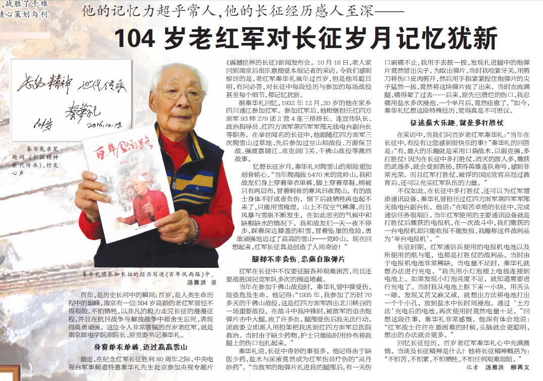 【江蘇工人報】104歲老紅軍對長征歲月記憶猶新