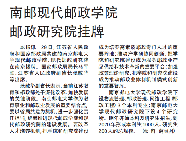 【新華日報】南郵現代郵政學院 郵政研究院掛牌