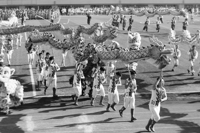 昨天,南京郵電大學舉辦校園田徑運動會,近200名大學生集體舞龍,氣勢恢宏。孔雀開屏、龍出宮、大橫八字……龍獅隊精神抖擻地做出很多高難度動作,令人目不暇接。據悉,南郵龍獅隊曾多次參加國家級和省內龍獅精英賽,連續多次捧回冠軍獎杯。