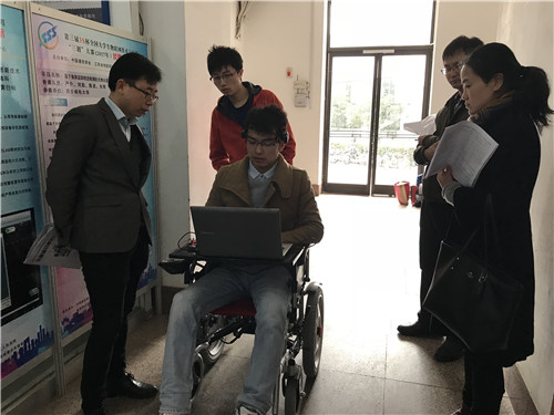 南京郵電大學杜安明正演示殘疾人關懷系統操作 值得一提的是,本次比賽中展示了一款基于腦電意念的殘疾人智慧健康關懷系統。制作團隊人員杜安明來自此次承辦比賽的南京郵電大學,他介紹此系統的困難點在于需要制作十分精細的深度學習算法。被提問到為何參與本次比賽時,杜安明解釋,本次比賽由本校承辦,而且這一方面有利于促進項目的推進,另一方面推動了南郵研究生和本科生對學術研究的共同參與。(李凌君) |