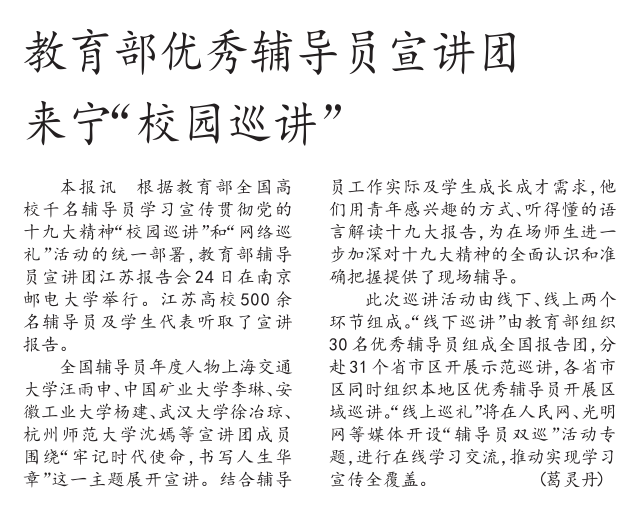 【新華日報】教育部優秀輔導員宣講團 來寧“校園巡講”