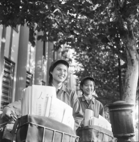 圖片展展出作品 18歲的郵遞員高躍 王廣林 攝 據介紹,這張照片是由新華日報著名攝影記者王廣林提供。是當時在新街口郵局做宣傳工作的繆國元帶王廣林去拍攝的。從照片背景大樓判斷,應該是在新街口郵局門口。