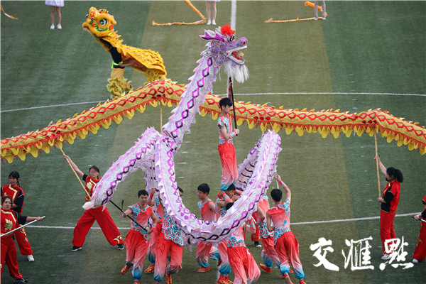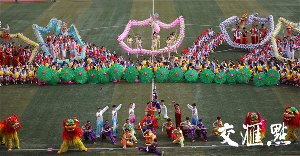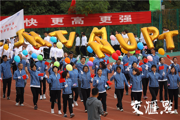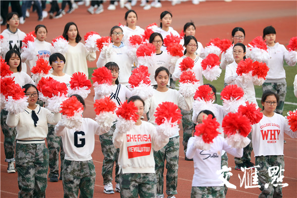 2018年10月19日,南京郵電大學(xué)舉辦該校第四十九屆田徑運動會,來自各個院系的大學(xué)生們整齊亮相,配以不同的服飾輪番展示神靈活現(xiàn)的舞龍舞獅、青春洋溢的啦啦操、整齊劃一的團體操、氣勢恢宏的武術(shù)等節(jié)目,場面壯觀吸引眼球。交匯點記者萬程鵬攝
