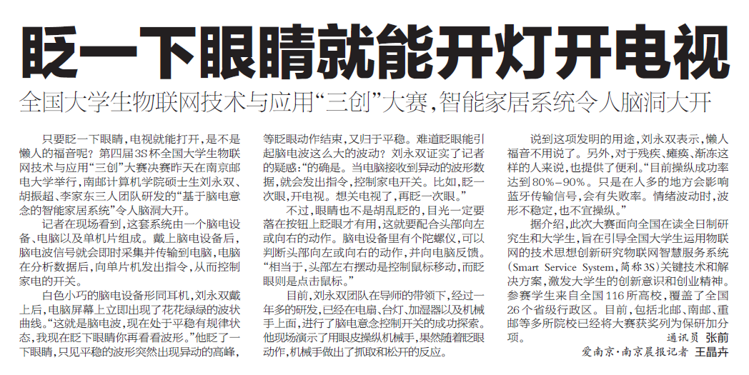 【南京晨報】眨一下眼睛就能開燈開電視