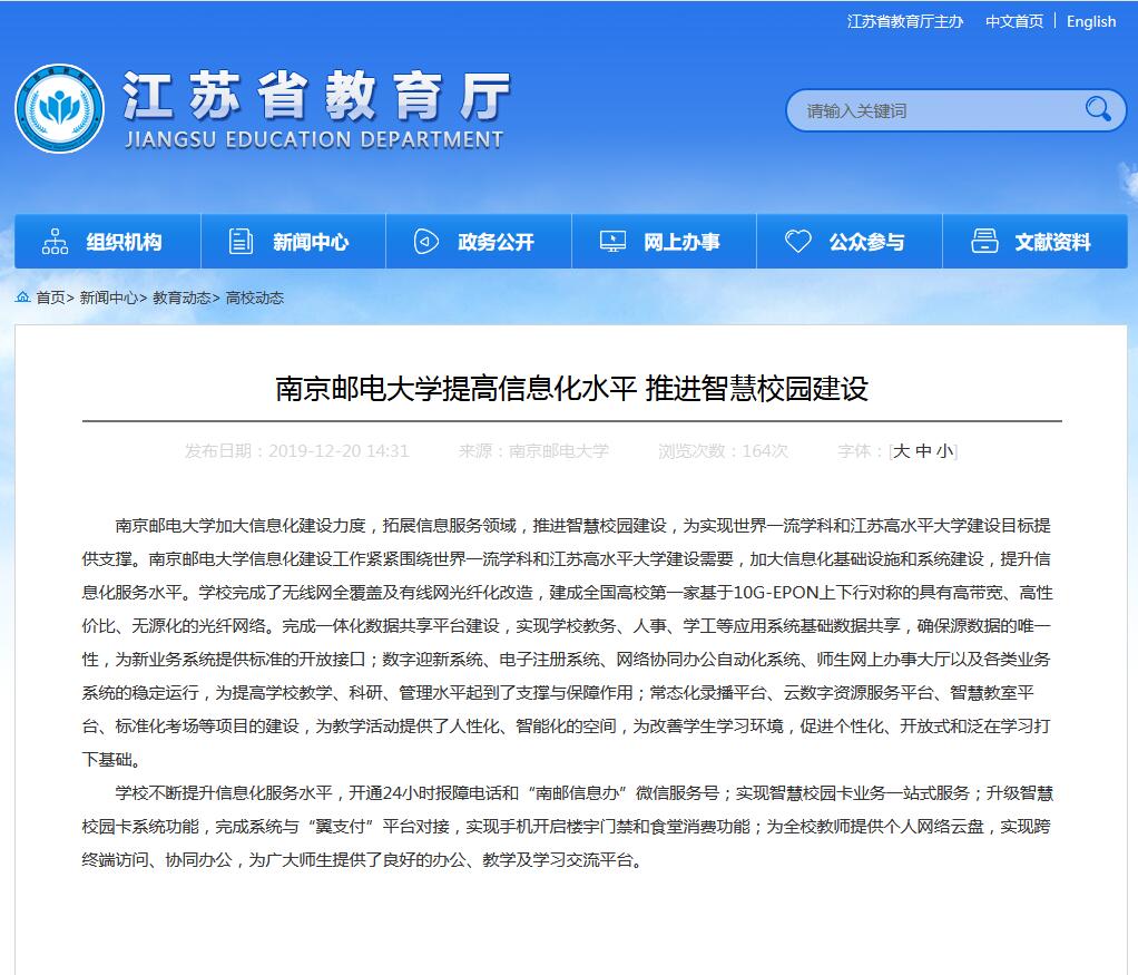 | 【江蘇教育】南京郵電大學(xué)提高信息化水平 推進(jìn)智慧校園建設(shè) |