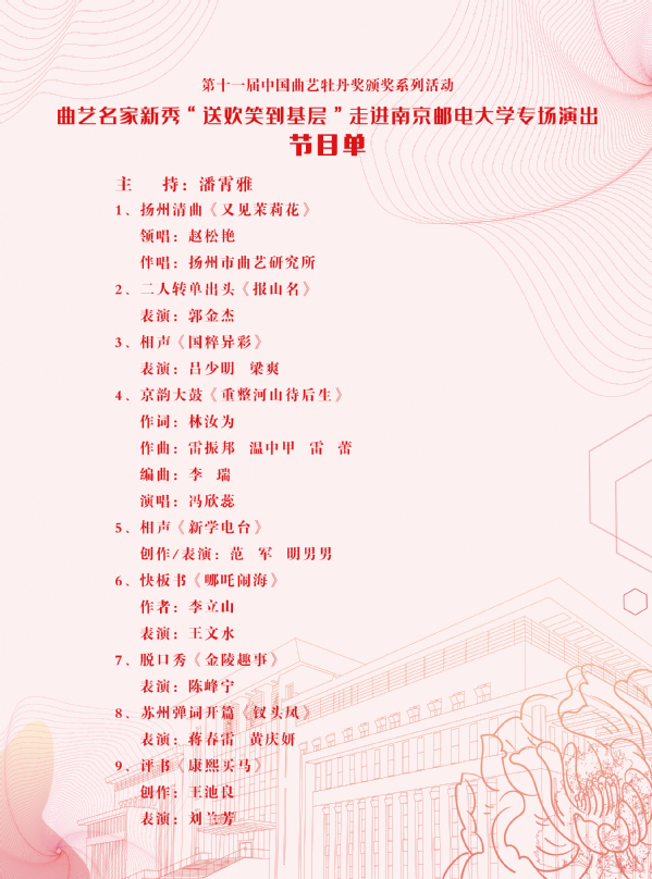 關于舉辦曲藝名家新秀“送歡笑進基層”走進南京郵電大學專場演出的通知