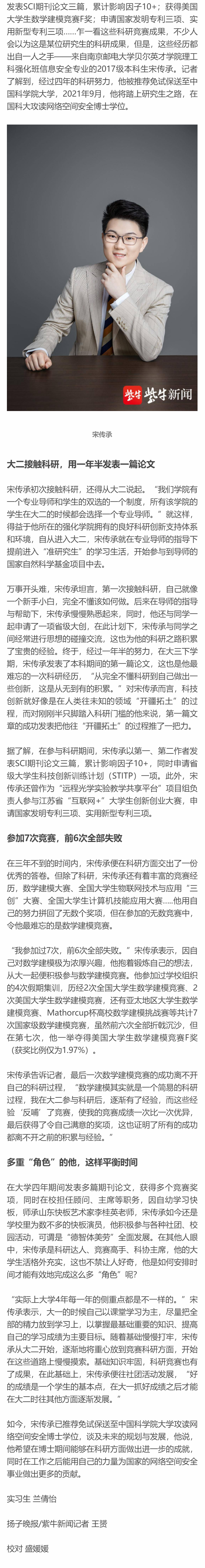 | 【揚子晚報客戶端】國際比賽獲重量級獎項、發(fā)表SCI期刊論文……南郵這位本科生被保送國科大讀博 |
