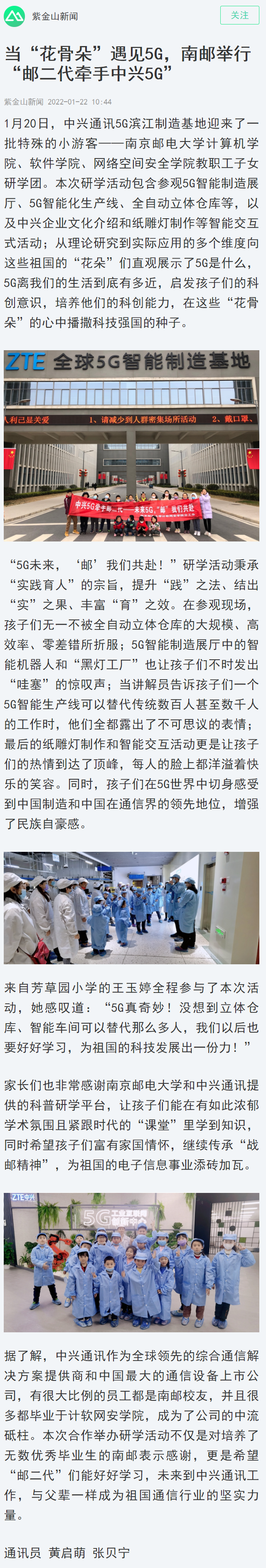 | 【南京日報客戶端】當“花骨朵”遇見5G,南郵舉行“郵二代牽手中興5G” |