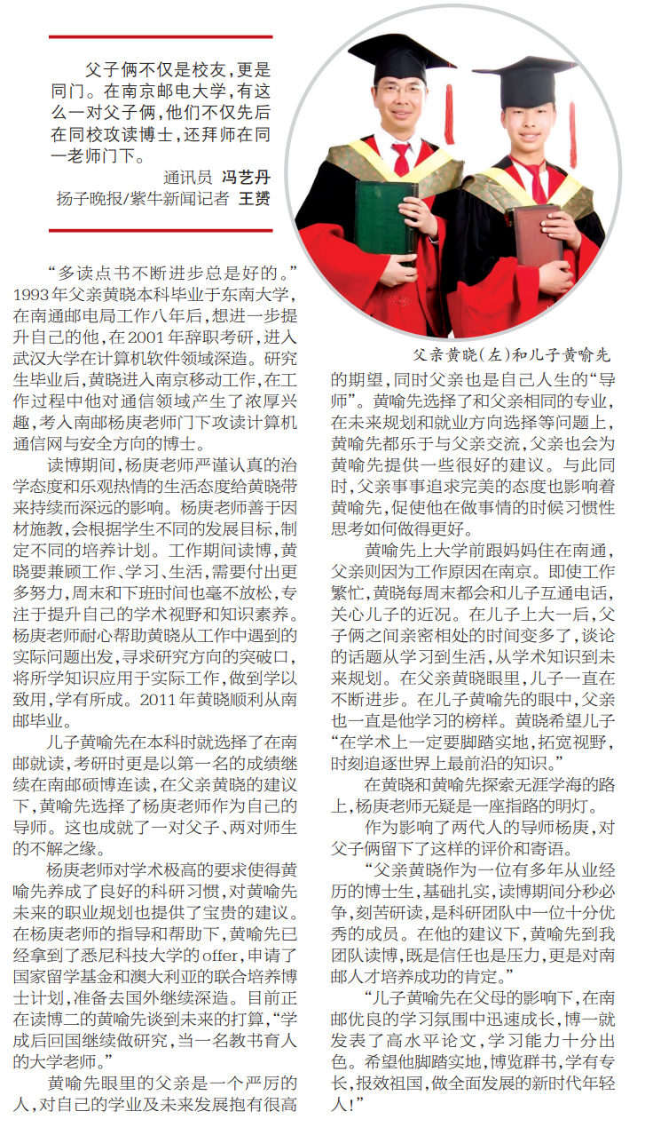 | 【揚子晚報】南郵這對父子,是校友更是同門! |