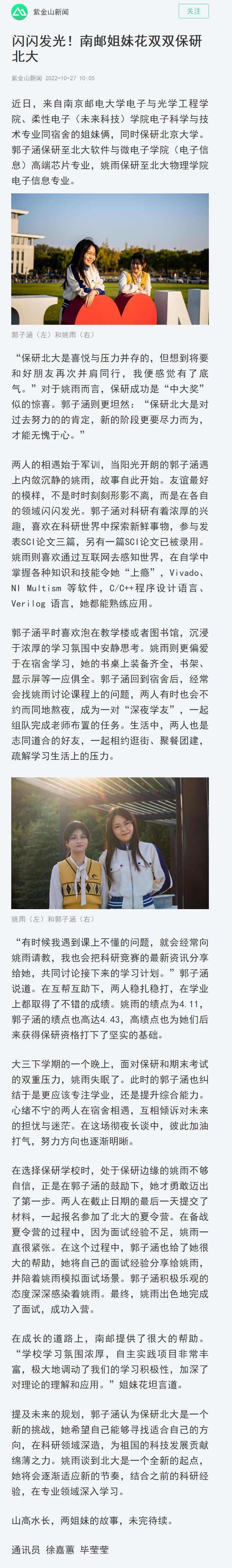| 【南京日報客戶端】閃閃發光!南郵姐妹花雙雙保研北大 |