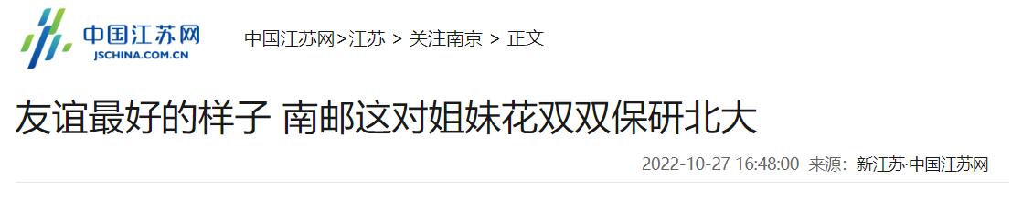 | 【中國江蘇網】友誼最好的樣子 南郵這對姐妹花雙雙保研北大 |