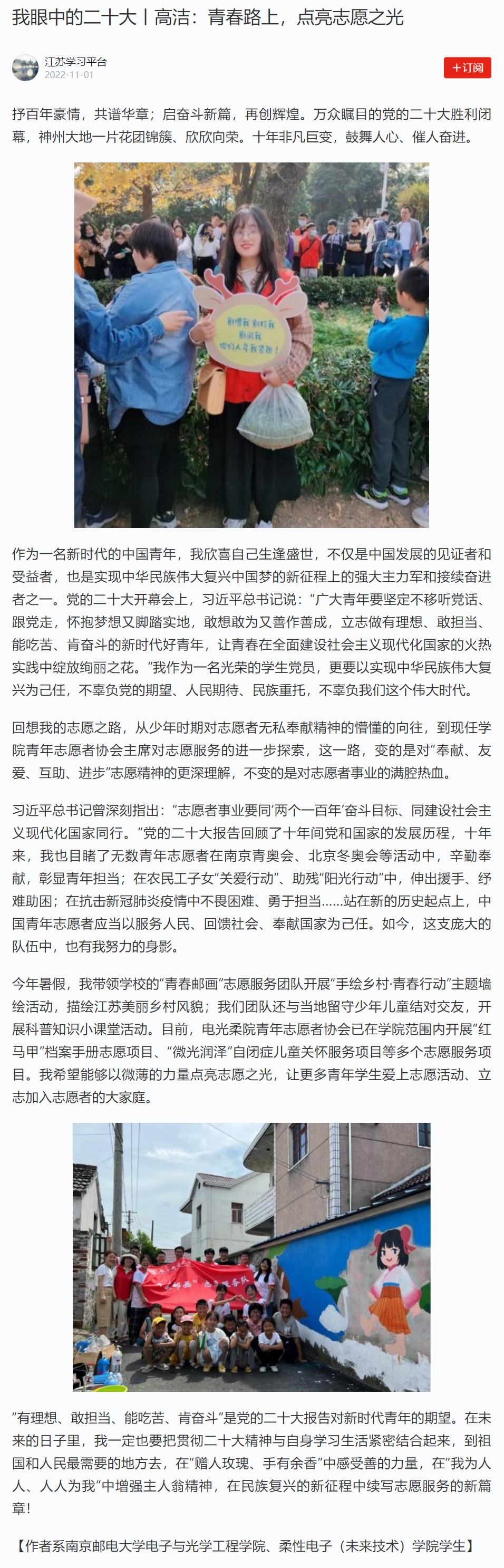 | 【學習強國】我眼中的二十大丨高潔:青春路上,點亮志愿之光 |