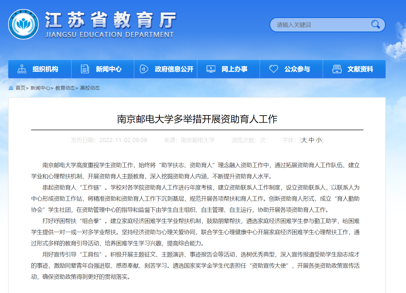 【省教育廳官網(wǎng)】南京郵電大學(xué)多舉措開展資助育人工作