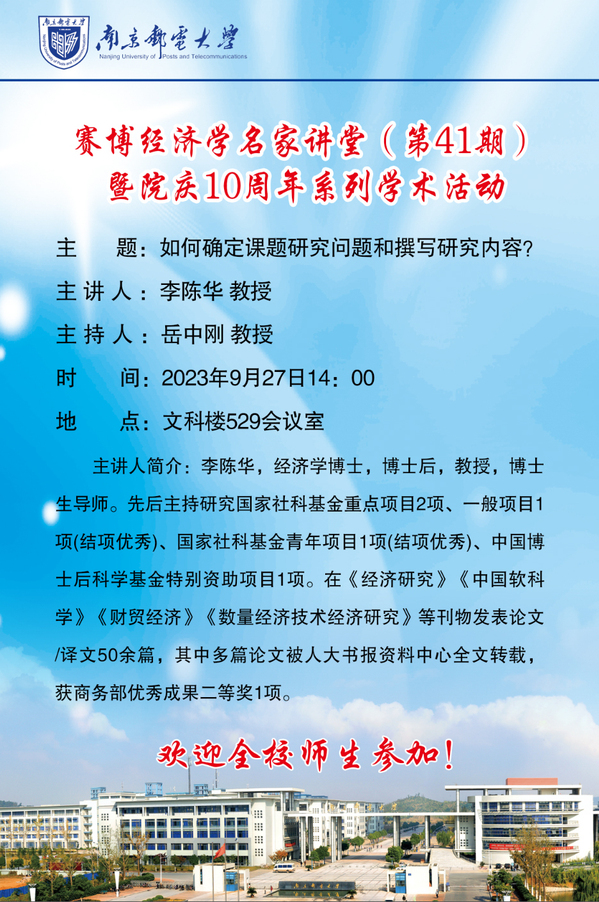 南京審計大學(xué)李陳華教授學(xué)術(shù)報告:《如何確定課題研究問題和撰寫研究內(nèi)容》