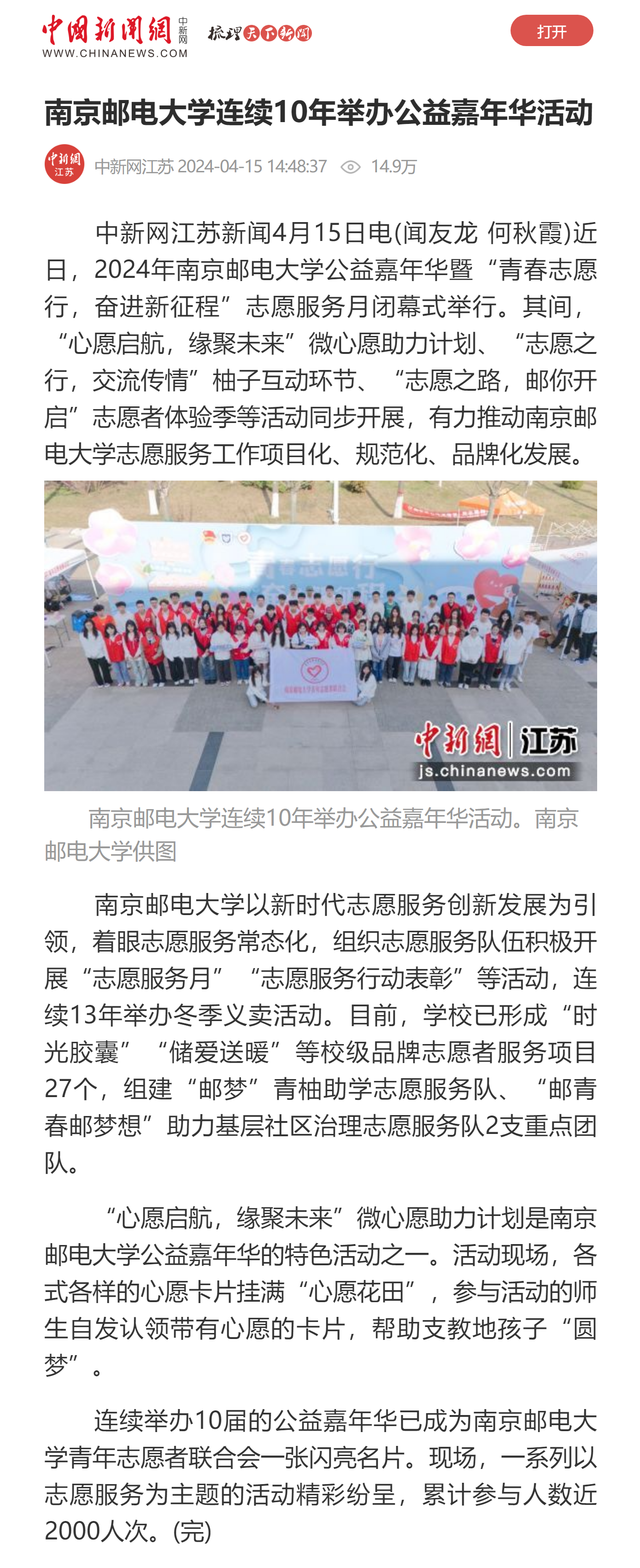 | 【中國新聞網(wǎng)】南京郵電大學(xué)連續(xù)10年舉辦公益嘉年華活動 |