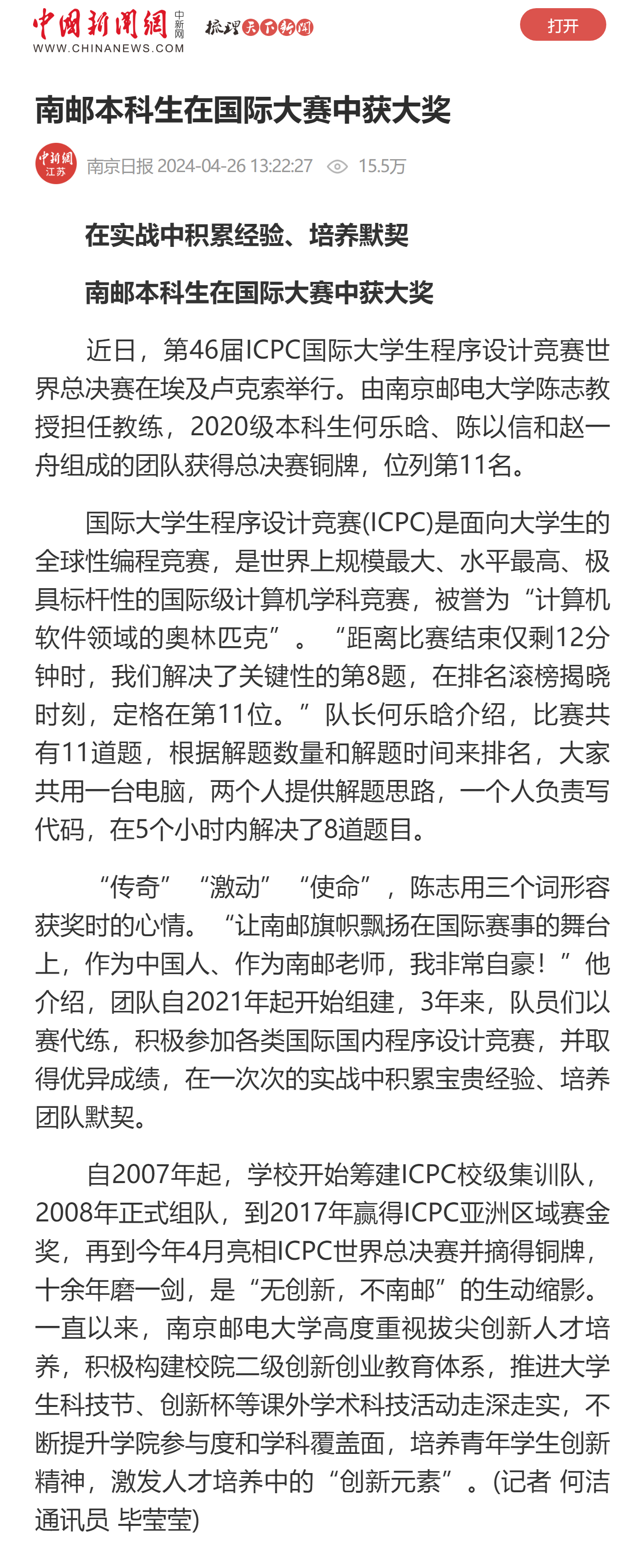 | 【中國新聞網(wǎng)】南郵本科生在國際大賽中獲大獎 |
