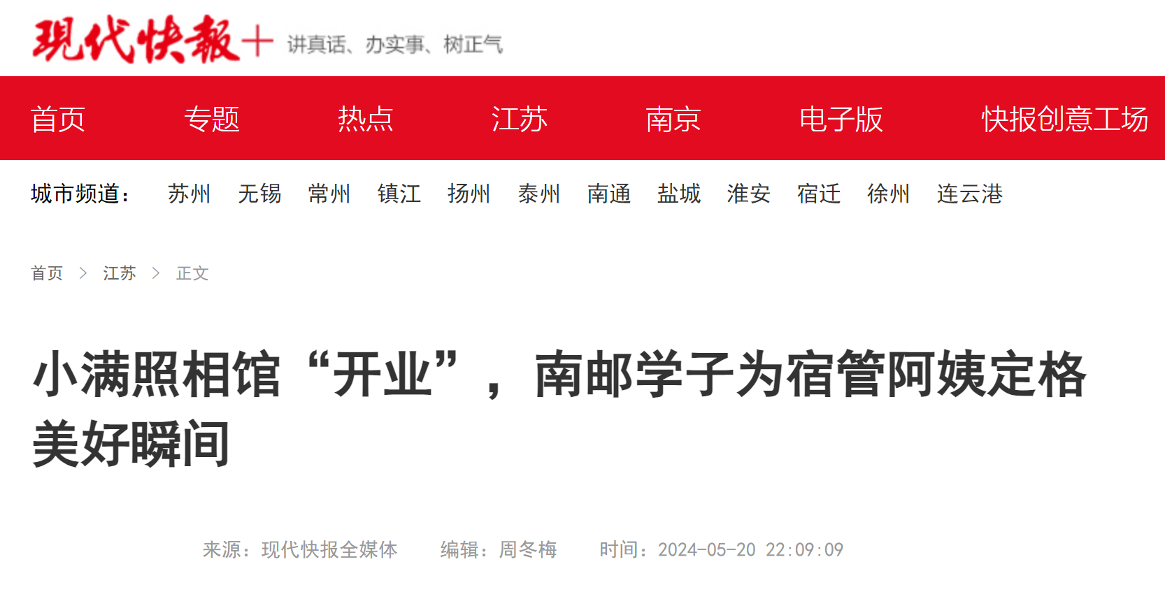 | 【現(xiàn)代快報全媒體】小滿照相館“開業(yè)”,南郵學子為宿管阿姨定格美好瞬間 |